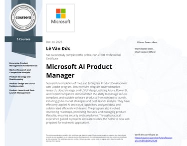 Chứng chỉ Microsoft AI Product Manager Professional Certificate