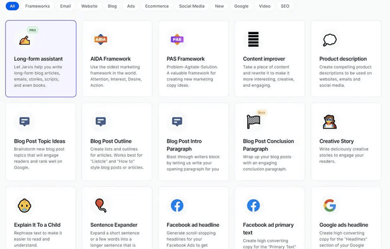 Chức năng chính: Công cụ viết và tiếp thị AI