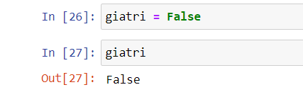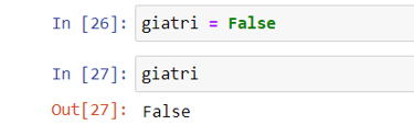 Mình tiếp tục gán tên biến giatri = False để xem khi chạy code ra có kết quả là True hay False. Và kết quả mình gán lại biến giatri = False thì khi chạy lệnh code ra có kết quả như hình bên dưới.