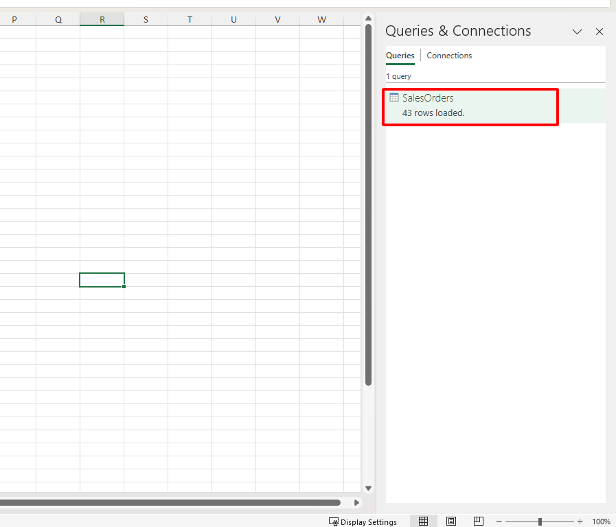 Bước 2: Tiếp theo, bạn nhìn qua bên phải màn hình excel. Bạn sẽ thấy hiển thị tên sheet SalesOrders. Sheet mà bạn đã lấy dữ liệu từ file excel nguồn nào đó.