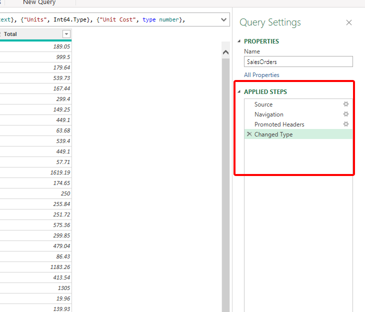 Đây chính là phần ghi lại lịch sử các bước mà bạn đã thao tác để xử lý dữ liệu trên công cụ Power Query Editor
