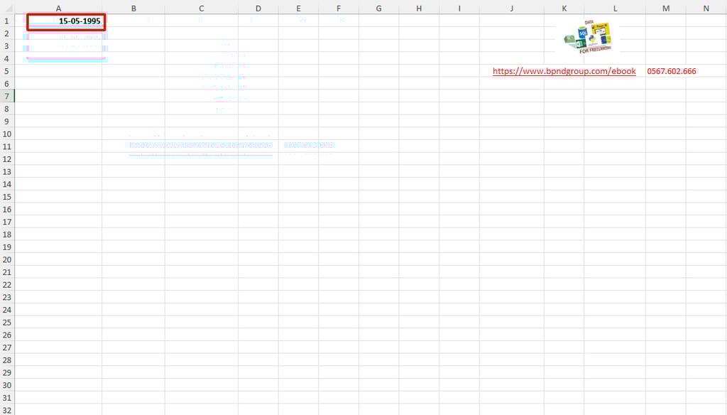 Bước 1: Nhập một ngày bất kỳ vào một ô, ví dụ, nhập ngày sinh của bạn vào ô A1 (giả sử là 15/5/1995).