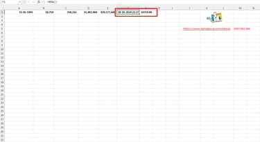 Bước 2: Sau đó, dùng công thức =F1 - A1 để tính số ngày tuổi của bạn tính đến giờ phút này. Kết quả sẽ là một số thập phân, trong đó phần nguyên là số ngày, và phần thập phân là phần của một ngày (ví dụ, 0.5 đại diện cho 12 giờ trưa).