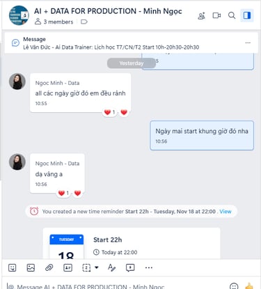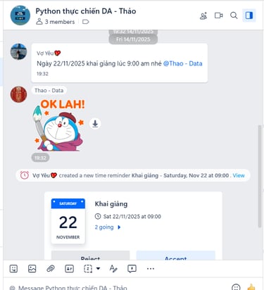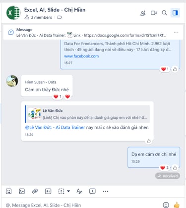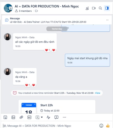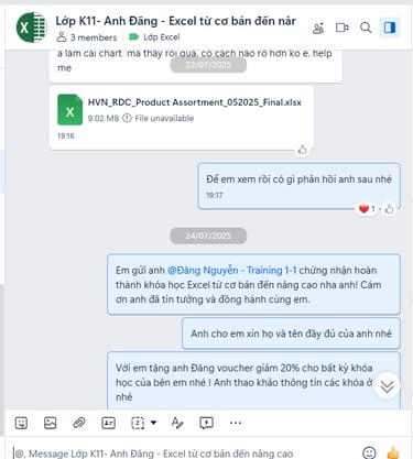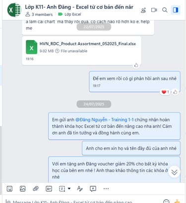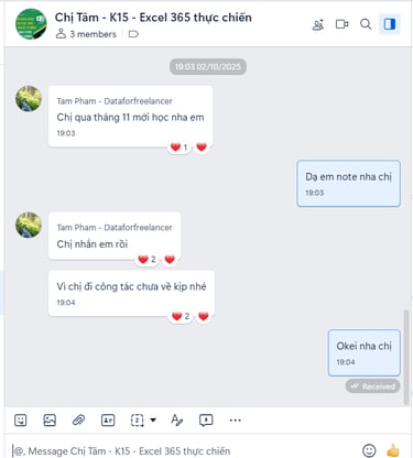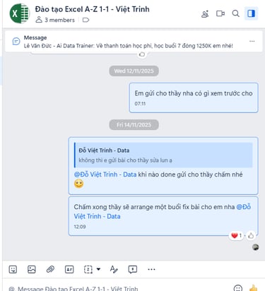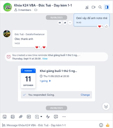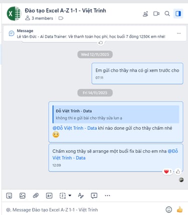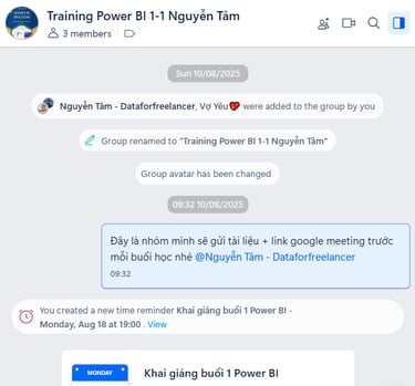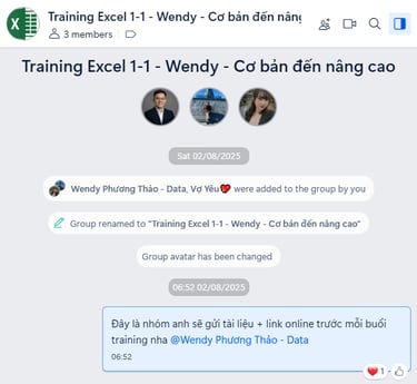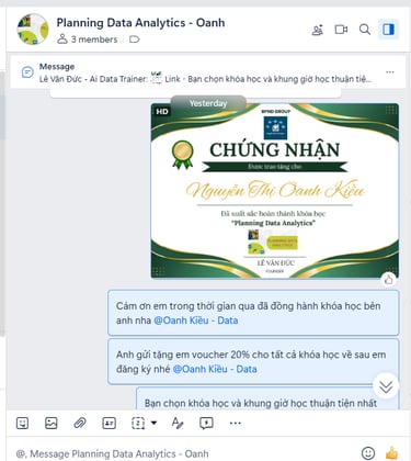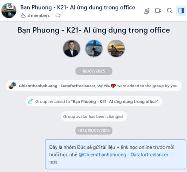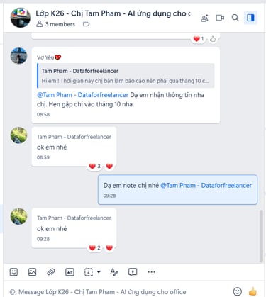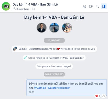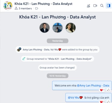 Sau khi học viên đăng ký khóa học thành công sẽ được thêm vào nhóm, được giảng viên, trợ giảng chăm sóc, gửi tài liệu và link học online trước mỗi buổi học!