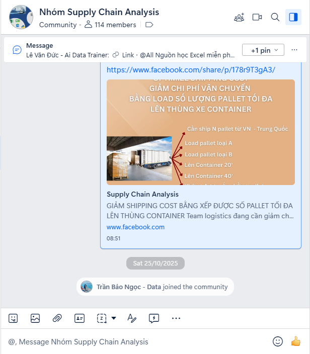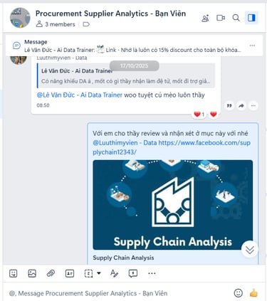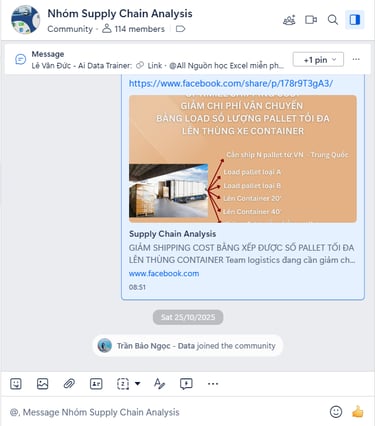 Được tham gia cộng đồng AI, Dữ liệu và Supply Chain thực chiến để giao lưu học hỏi cùng nhau bứt phá kĩ năng!