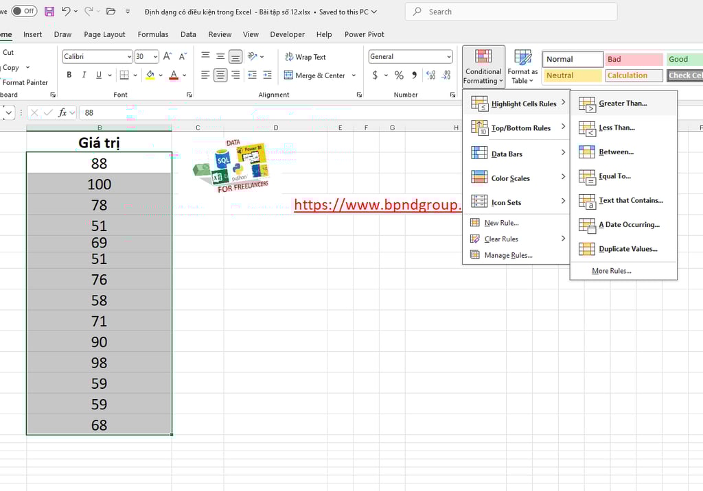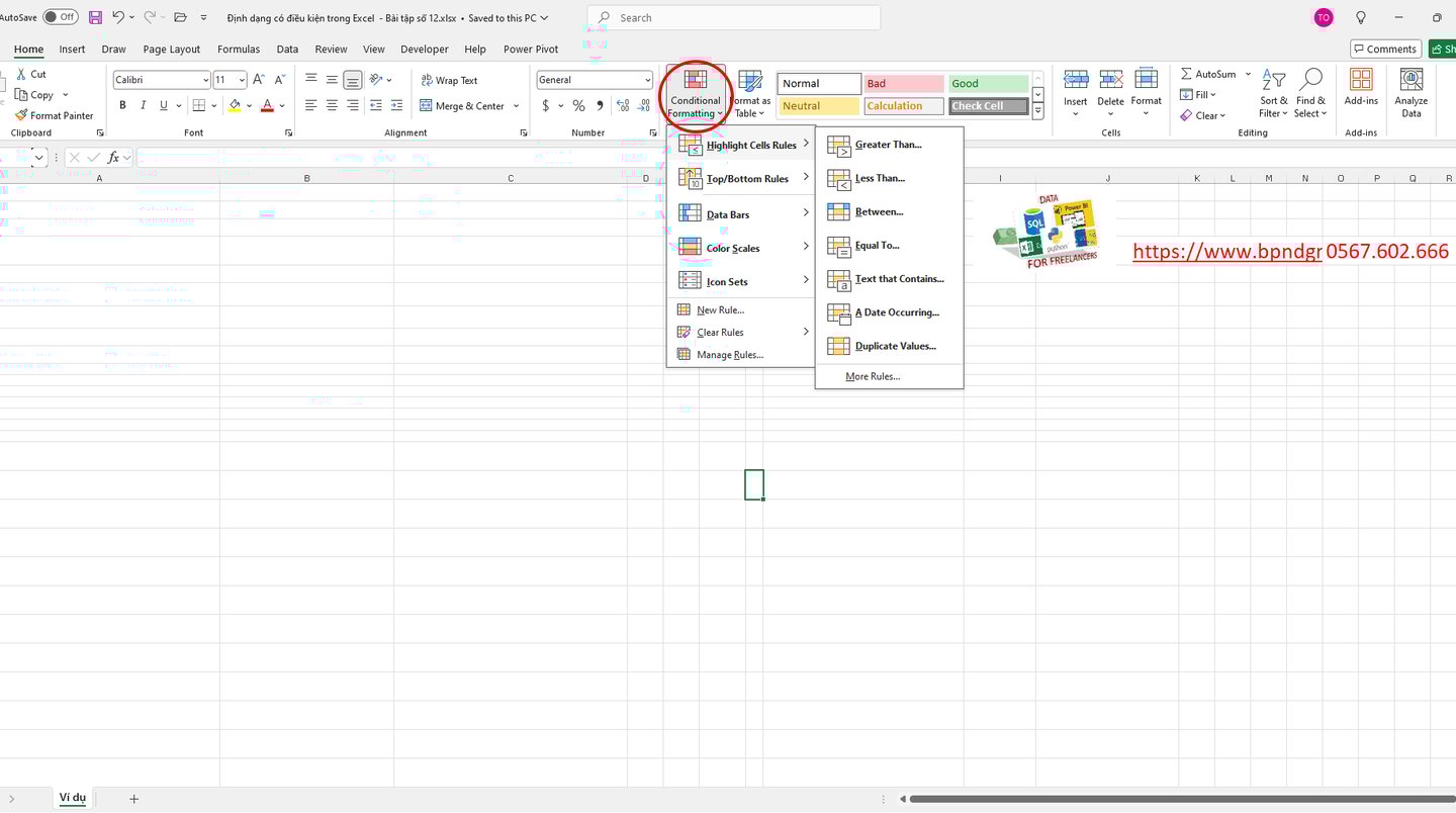 Chúng ta hãy cùng thực hành lại những gì chúng ta đã học về các kiểu định dạng có điều kiện ở trên.