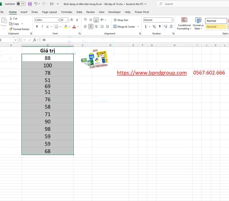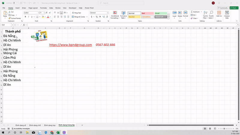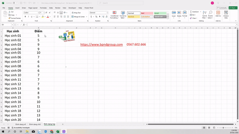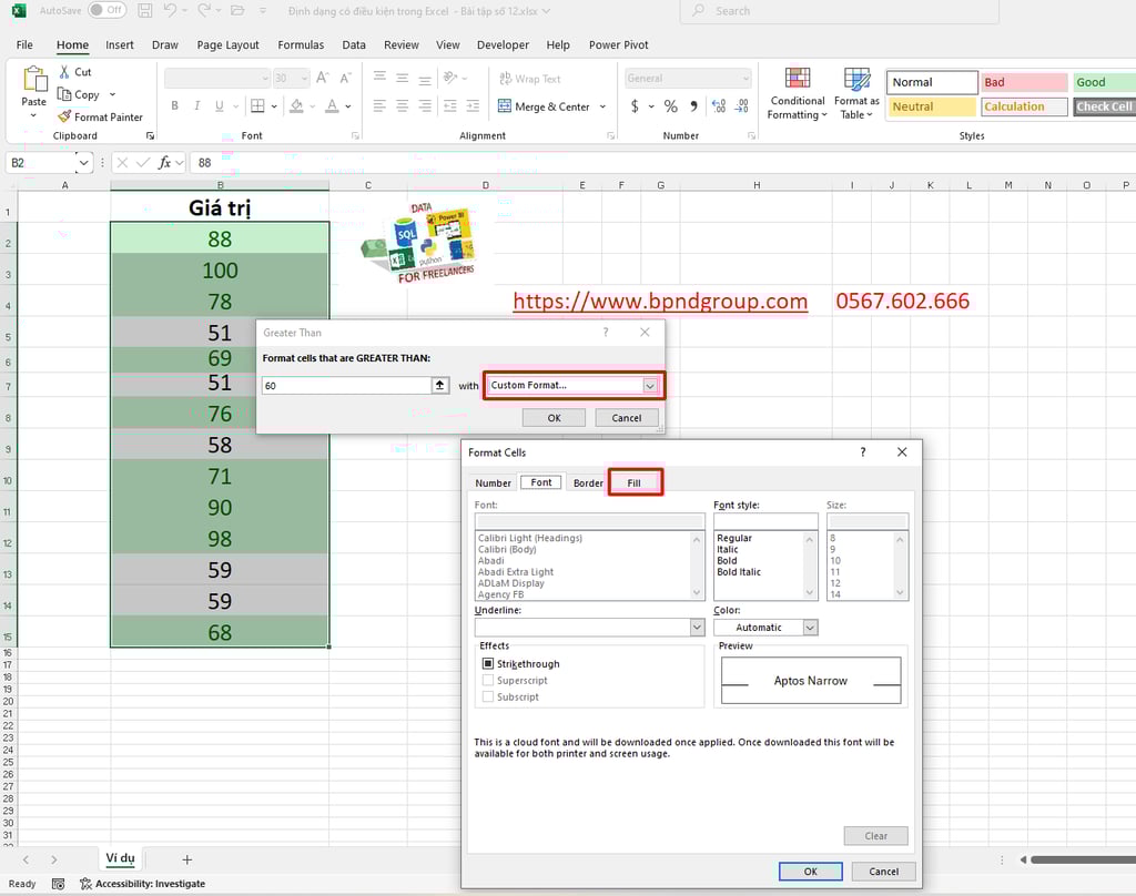 Định dạng có điều kiện trong Excel – Bài tập số 12