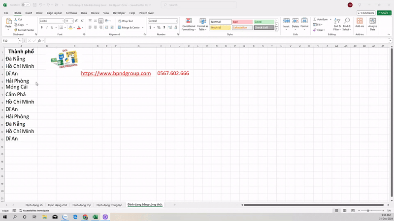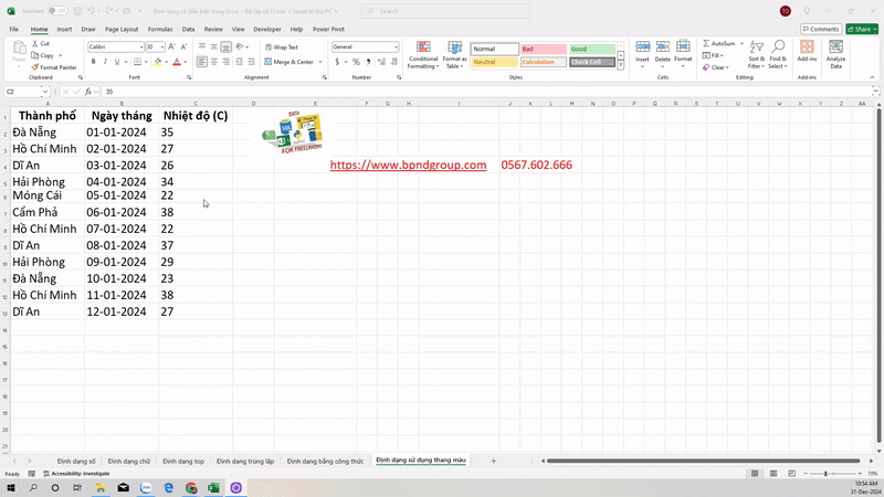 Thực hành định dạng có điều kiện