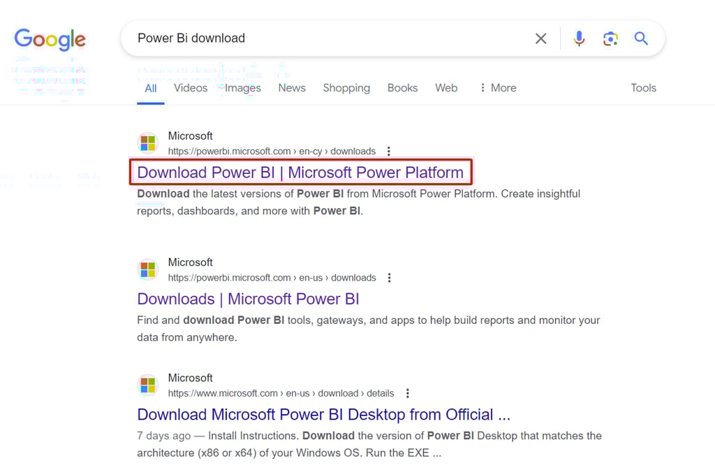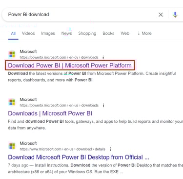 Sau khi Google hiển thị kết quả tìm kiếm. Bạn chọn kết quả đầu tiên Download Power BI | Microsoft Power Platform
