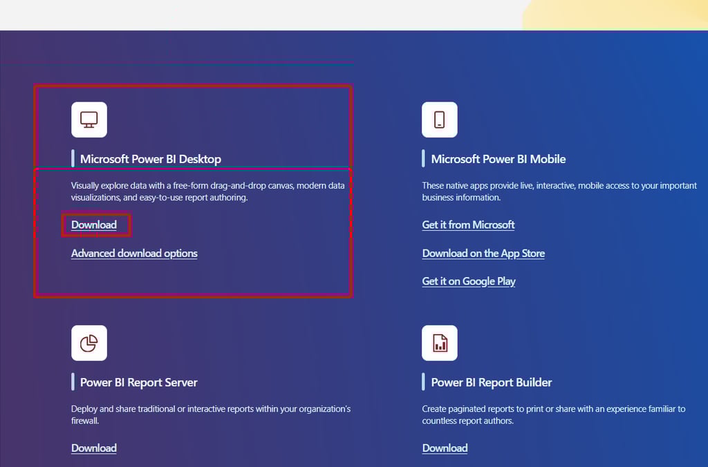 Bước 3: Chọn Download tại mục Microsoft Power BI Desktop