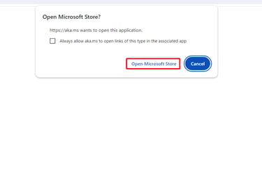 Sau khi bạn chọn Download thì màn hình sẽ hiển thị lên màn hình bên dưới. Bạn tiếp tục chọn Open Microsoft Store