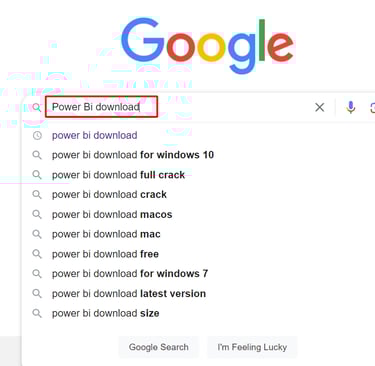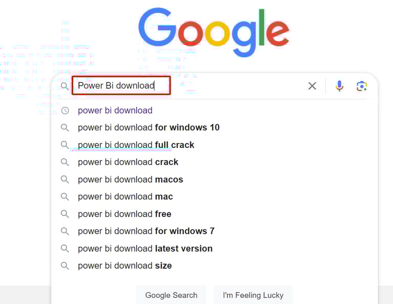 Bạn gõ Power Bi download vào ô tìm kiếm của Google
