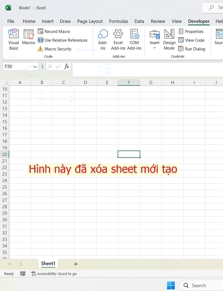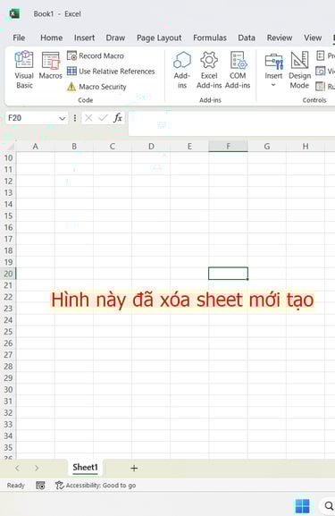 Bây giờ, mình xóa sheet mới tạo và nội dung vừa nhập và format. Để test chạy code macro. Xem là nó có tạo ra sheet mới và điền thông tin thủ công mình vừa nhập hồi nảy hay không.
