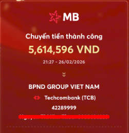 Bước 2: Khách hàng chuyển khoản trước 23h hằng ngày để Bpnd Group Việt Nam kịp xuất hóa đơn trong ngày