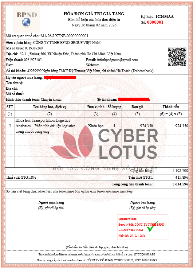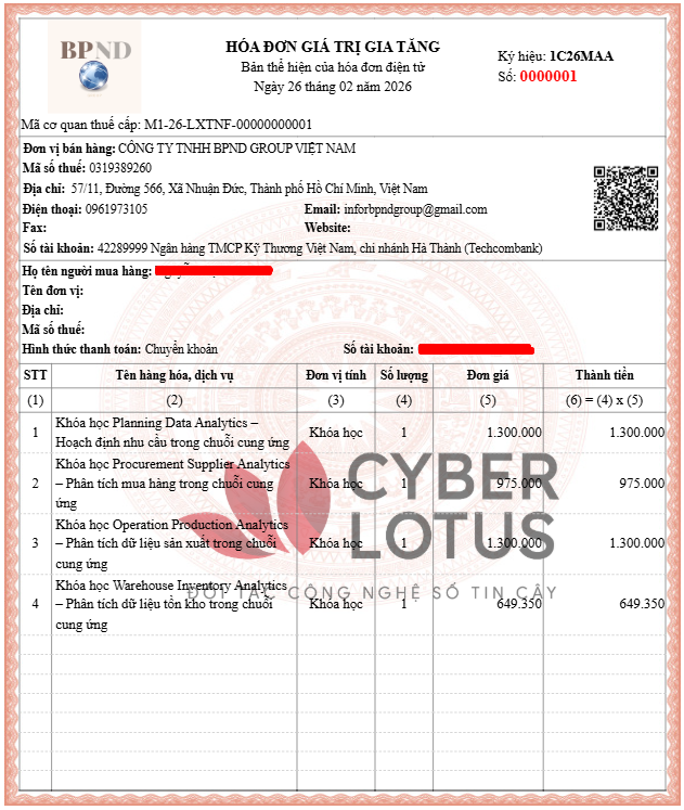 Bước 3: Bpnd Group Việt Nam xuất hóa đơn chính thức cho khách hàng