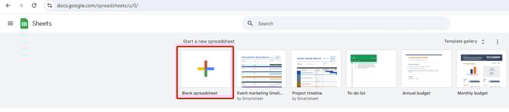 Tiếp theo bạn chọn Sheets rồi chọn Blank spreadsheet