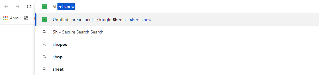 Trong phần tìm kiếm của google bạn gõ giúp mình Sheets.new rồi nhấn Enter.