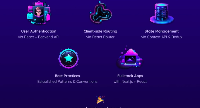 Khóa học này không chỉ là lý thuyết. Bạn sẽ xây dựng nhiều ứng dụng demo chất lượng cao, bao gồm một ứng dụng full-stack với NextJS. Cuối khóa học, bạn sẽ tự tin trong việc phát triển các ứng dụng React mạnh mẽ, mở rộng.